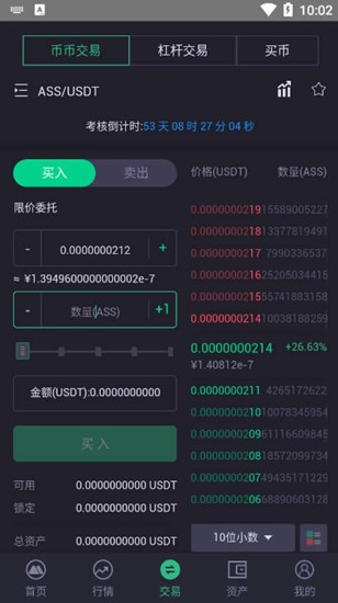 2、币币兑换模式:需先通过法币通道获取USDT等基准数字货币,随后在交易对列表选择ASS/USDT进行兑换操作