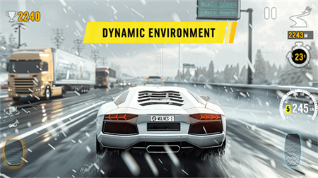 4、动态天气系统实时改变赛道特性,雨雪天气将影响轮胎抓地力