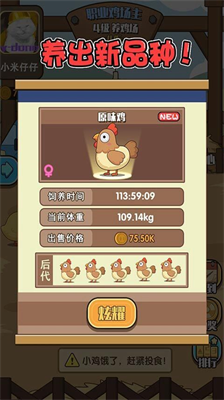 游戏独创的基因突变机制让养殖充满期待感,每次孵化都可能诞生稀有品种。通过科学配种可提升优质基因遗传概率,高品级鸡种不仅更具观赏性,其产出的金蛋价值更是普通品种的数十倍。智能托管系统让玩家无需时刻操作,离线期间仍可持续获得收益。