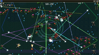 本作采用极简操作模式,仅需控制角色移动与资源收集即可开启冒险。战斗过程中可解锁包括圣十字、魔导书、雷电法阵等二十余种特色武器,通过特定道具组合还能激活隐藏的进化形态。例如将骨鞭与诅咒之心融合可生成吸血魔鞭,持续对范围内敌人造成穿透伤害。游戏内还包含昼夜循环系统与动态难度调整,确保每次战斗都能获得新鲜体验。