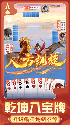 八宝牌机制突破传统规则,癞子牌与宝牌组合形成特殊倍数加成,自摸结算带来麻将式策略体验。