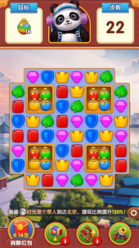 动态天气系统让东京樱花场景飘落真实花瓣粒子,开罗沙漠关卡会随机出现沙尘暴特效。好友助力功能可召唤伙伴熊猫助阵消除,排行榜系统实时更新全球玩家进度。每日文化问答环节答对可激活双倍积分状态,真正实现玩学结合。