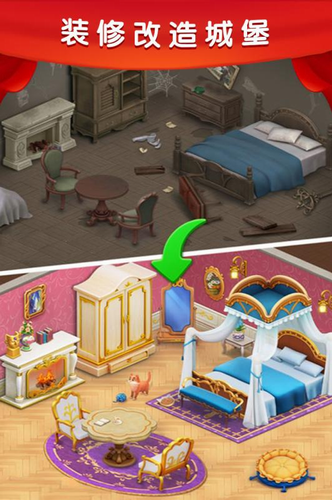梦幻城堡消除装扮迪士尼之旅是一款融合经典三消玩法与创意装修设计的休闲手游,游戏采用迪士尼动画主题风格,精心绘制了灰姑娘、白雪公主等经典角色的专属场景。玩家通过趣味消除收集装修素材,亲手打造十二个主题房间,从破败阁楼到华丽宴会厅的蜕变过程充满惊喜。