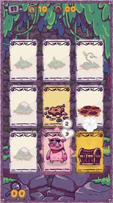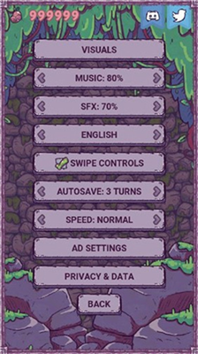 采用逐帧绘制的场景动画,中世纪魔幻风格与卡通表现手法完美融合。不同层数的地牢拥有独立主题配色,从幽绿沼泽到熔岩炼狱,每个区域都呈现独特视觉符号。