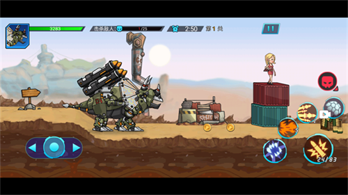 恐龙机甲射手全新版本是一款结合科幻与史前生物的横版动作射击游戏,采用次世代物理引擎构建沉浸式战场。玩家将驾驶不同属性的机械恐龙,在霓虹都市中对抗异星入侵者,通过精准操作与战术搭配守护人类文明。