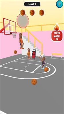 2、创新操作模式:拖动角色起跳,精准瞄准篮筐位置完成投射;
