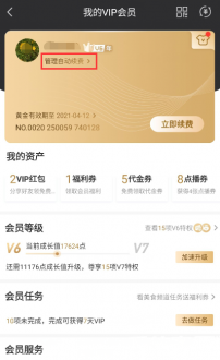 4. 在会员信息栏下方找到【管理自动续费】入口