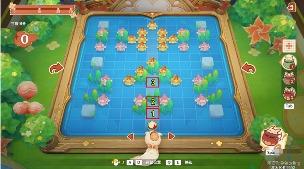 操控嘟嘟可移动至左侧战略点位,装备岩核爆弹对隐藏在水草后的角角鱼实施精准打击。此处推荐采用抛物线预判投掷法,利用水面波纹判断鱼群位置,单发爆弹即可完成区域清场。