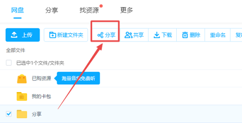 2、完成文件夹创建后,鼠标悬停在该文件夹上方,点击操作栏中的分享功能按钮。