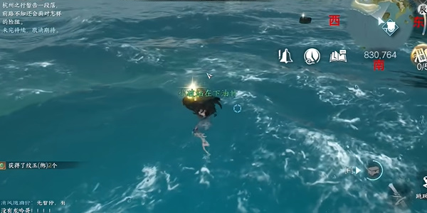 3. 第三处坐标【830.764】位于浅滩礁石区,建议切换潜水视角观察水底发光物体;