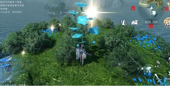 5. 坐标【781.741】处的第五宝箱被莲丛环绕,可借助轻功跃至最大莲叶处激活采集判定;