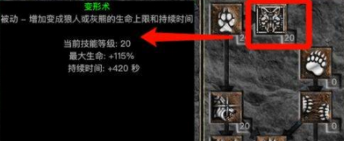 该被动技能直接影响变身后的生存能力与持续时间。每级提升12%最大生命值与30秒变身时长,满级后可使狼形态维持时间突破10分钟,同时获得240%生命值增幅。此技能需与狼人变化同步培养,确保输出与防御同步成长。