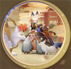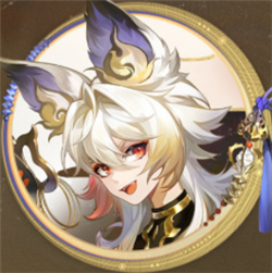 采用暮色渐变工艺处理发梢,金红云纹与雪色毛发形成视觉对比,尖耳造型突破常规比例设计,搭配象征守护意志的琥珀色兽瞳,整体塑造出兼具神性与野性的视觉形象。腰侧悬挂的祈福面具与足间金铃,更暗合角色背景故事中的契约羁绊。